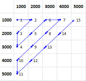 Undersøge tal 2001 - 5000 i skridt 1 - 1000.