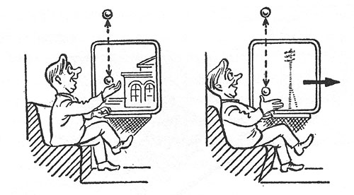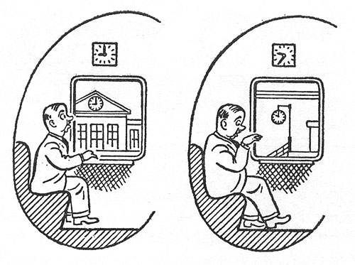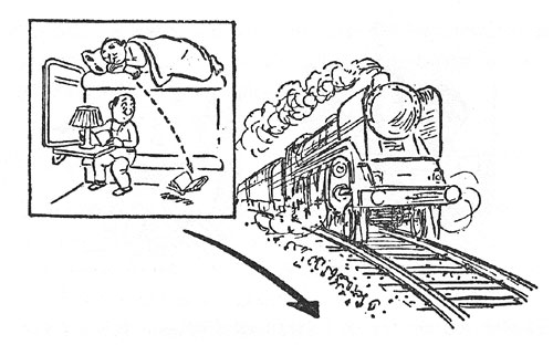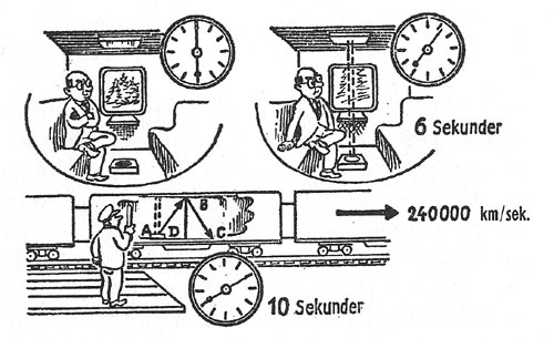 Tegning fra L.D.Landau & G.B.Rumer: "Hvad er relativitet?",